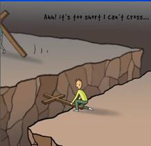 他也想如法炮制。只可惜啊,他的十字架之前已经被砍掉了长长的一大截,根本无法做成桥帮助他跨越沟壑!